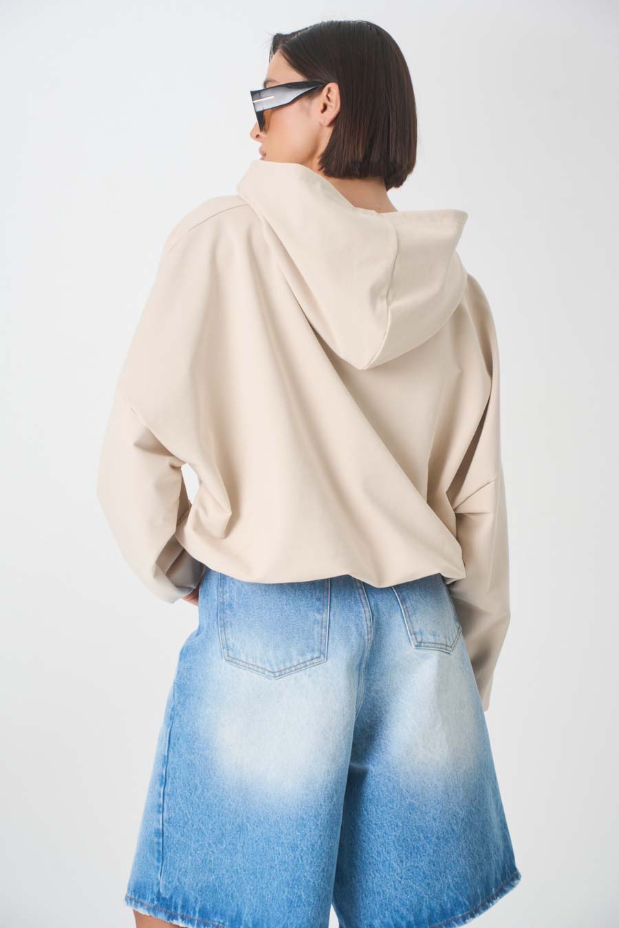 Obszerny kaptur. Nisko wszyte rękawy.