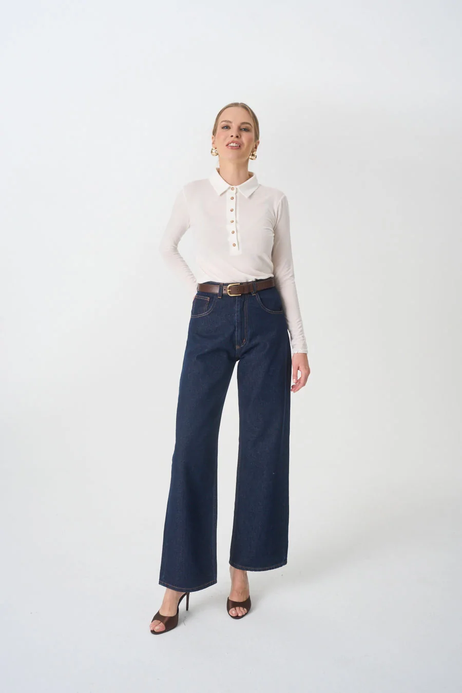 Półokrągły dekolt wykończony plisą z wiązaniem.