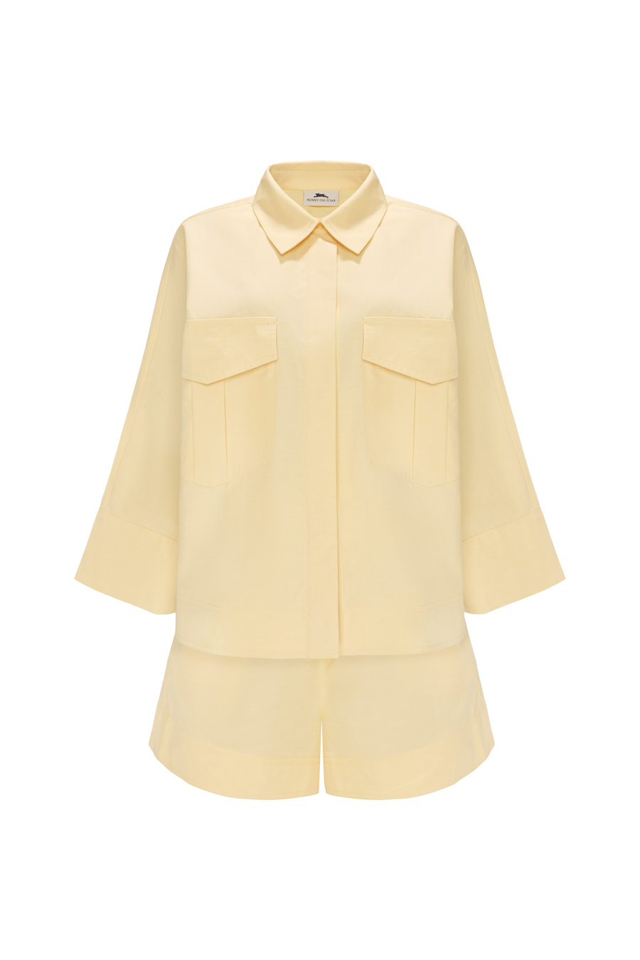 Klasyczny kołnierzyk, guziki ukryte pod listwą.