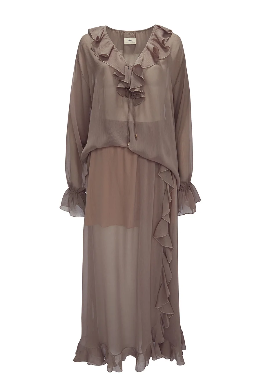 Lekko oversize’owa koszula z transparentnej tkaniny.