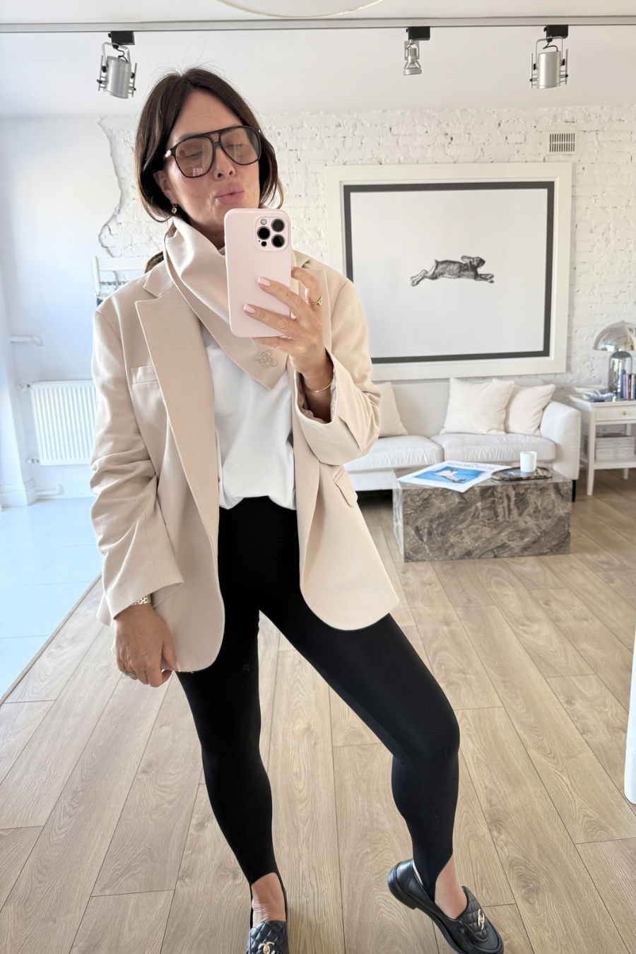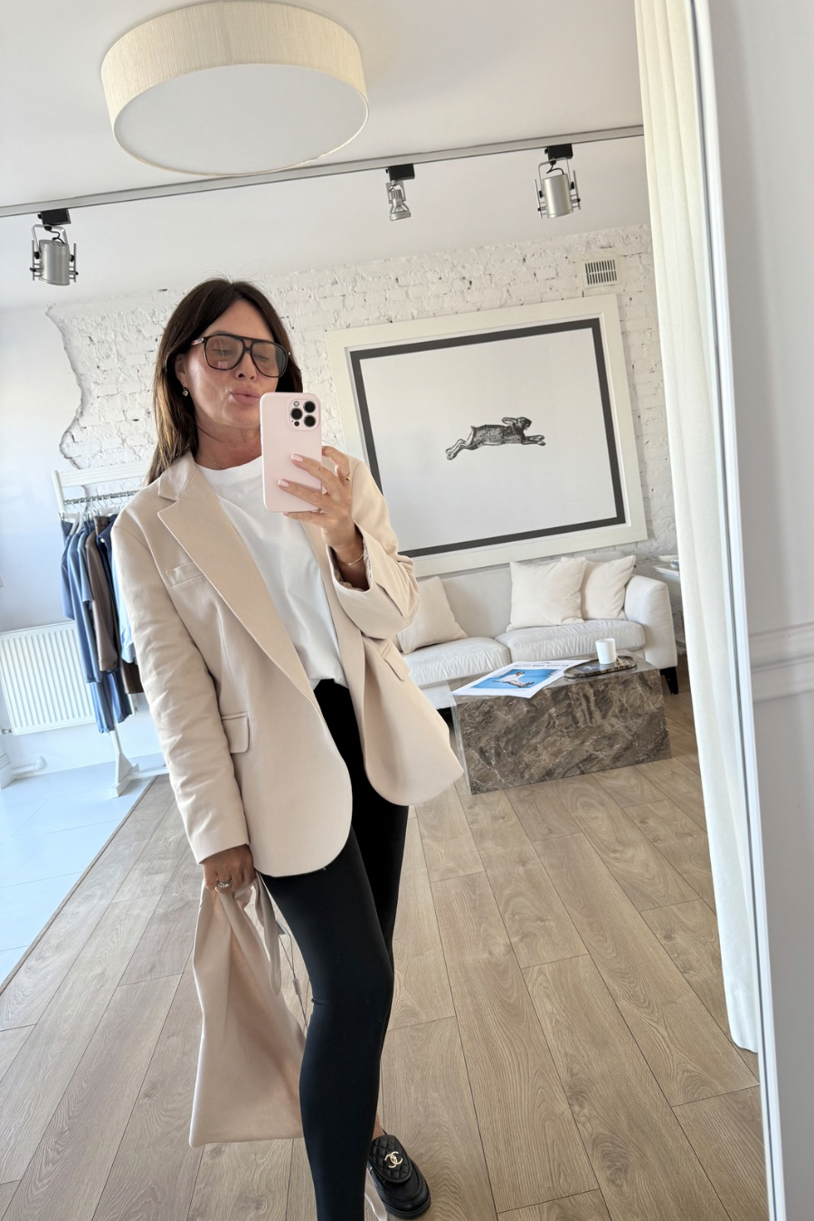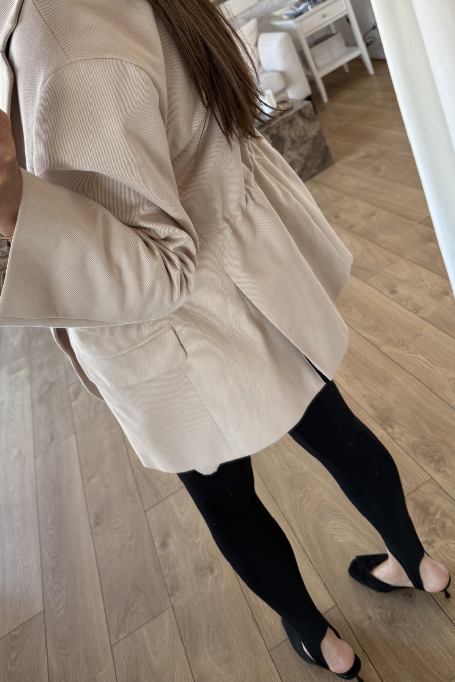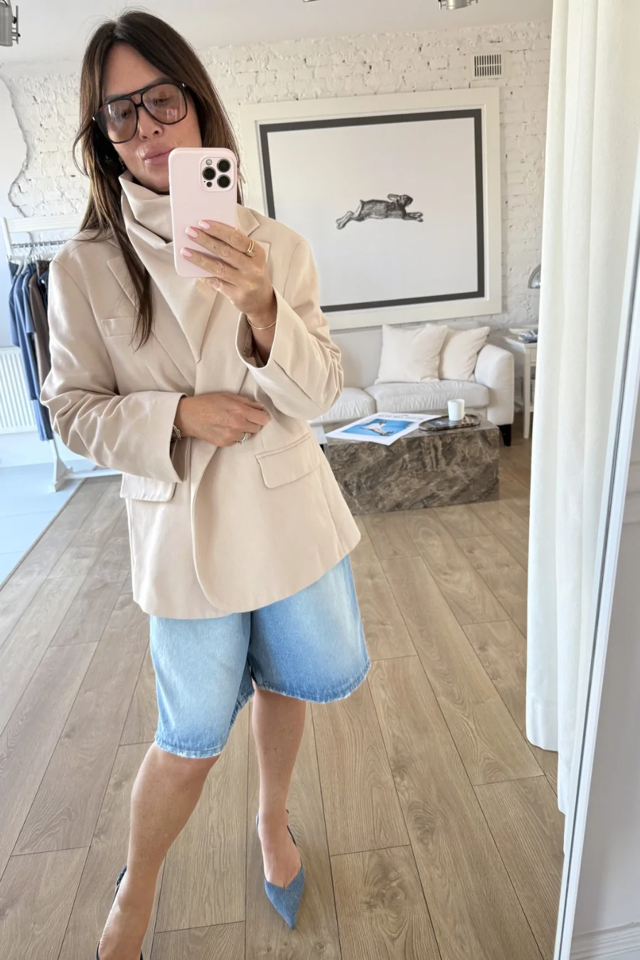 Oversize’owa, pudełkowa marynarka o męskim kroju.