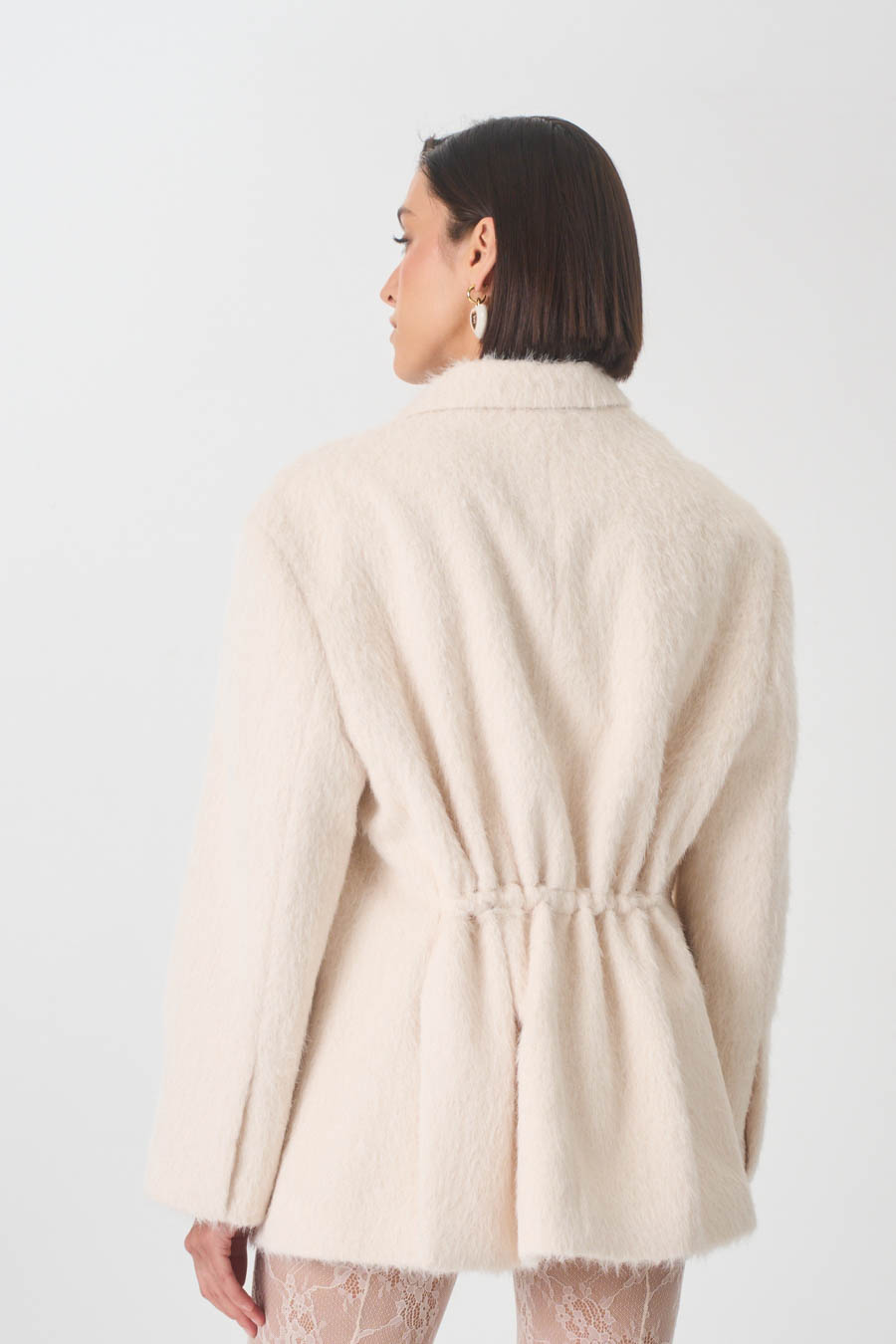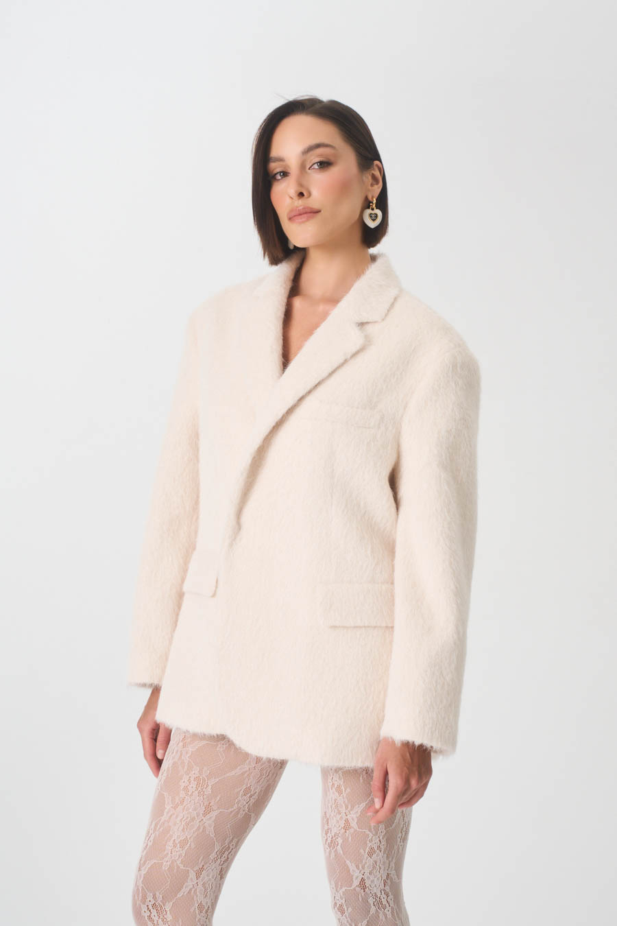 Oversize’owa marynarka o męskim kroju z efektownej dzianiny z włosem.