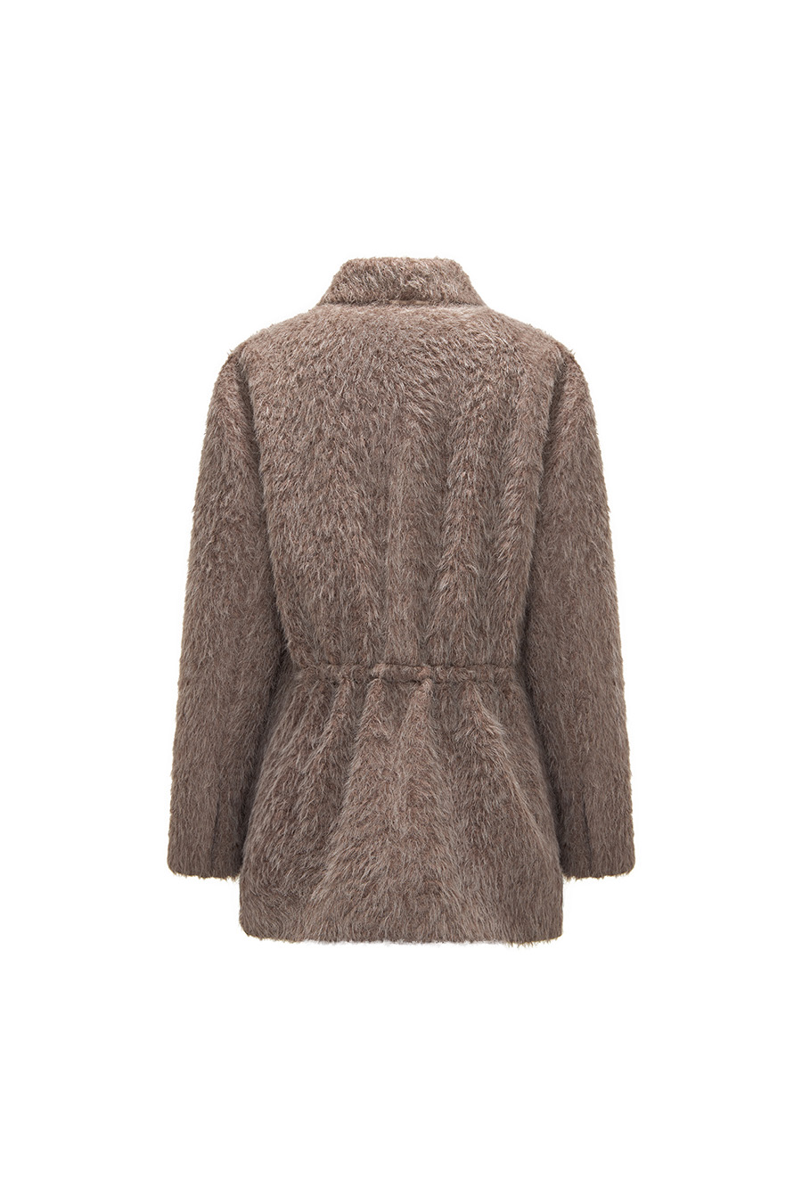 Oversize’owa marynarka o męskim kroju z efektownej dzianiny z włosem.