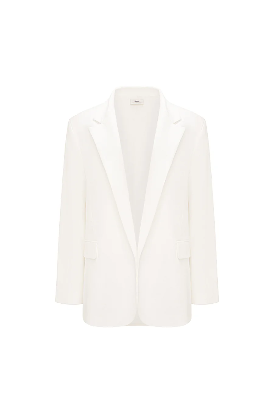 Oversize’owa, pudełkowa marynarka o męskim kroju.