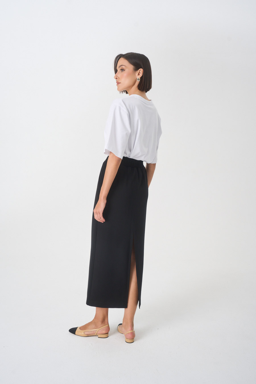 Klasyczna, ołówkowa spódnica z wysokim stanem.