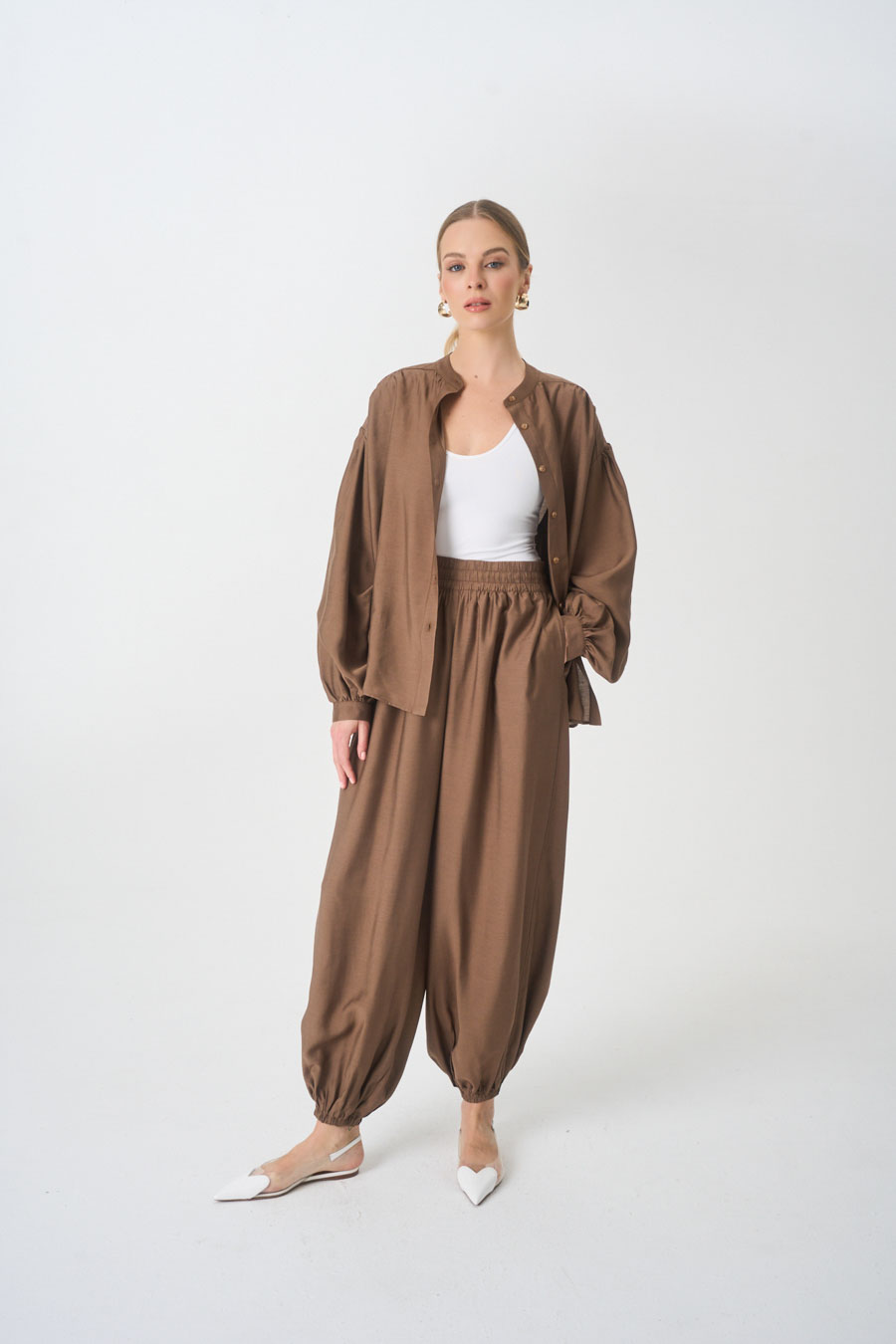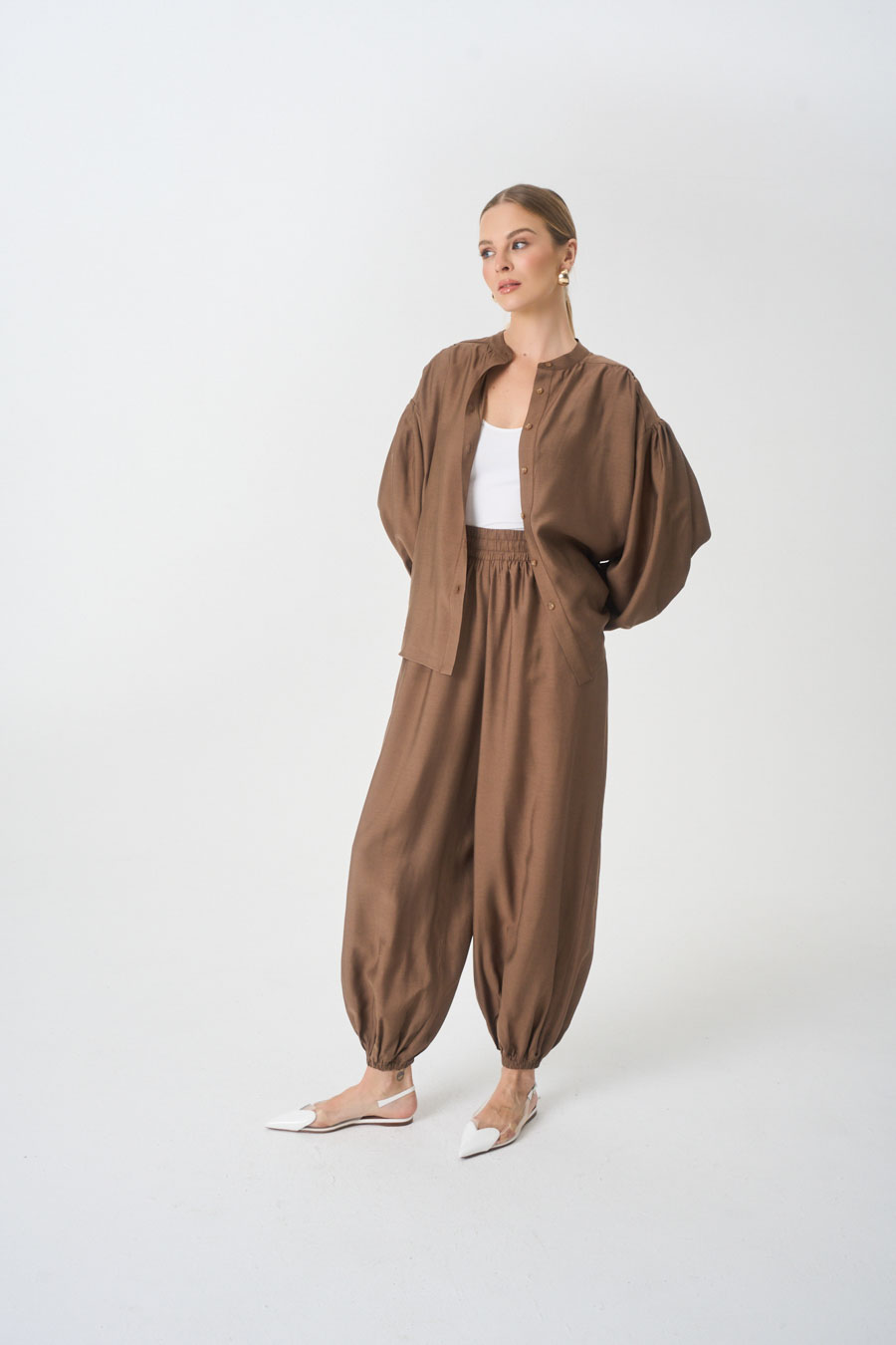 Luźne nogawki zakończone gumką.