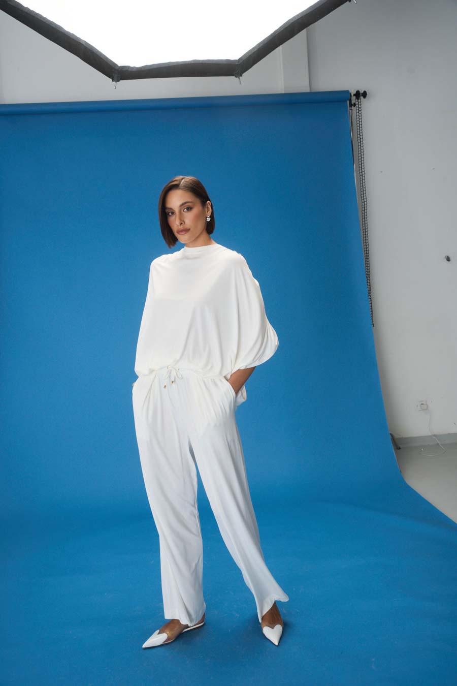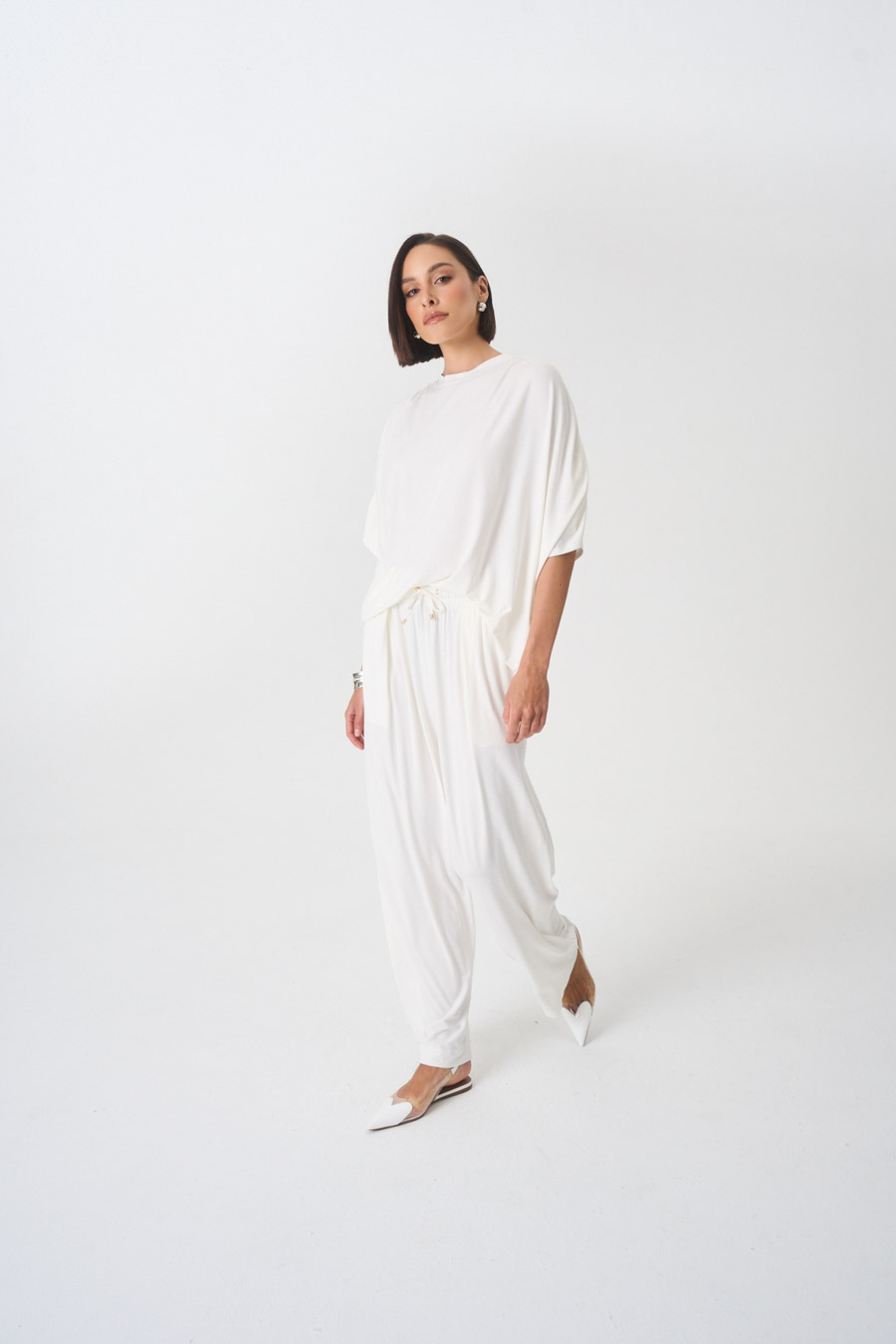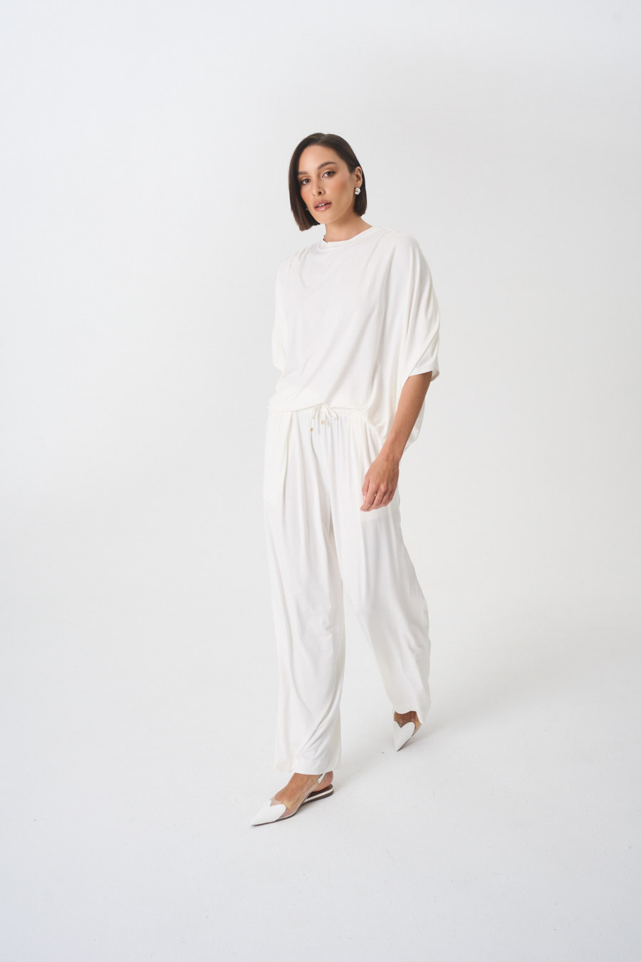 Luźne, szerokie spodnie z miękkiej dzianiny bambusowej.