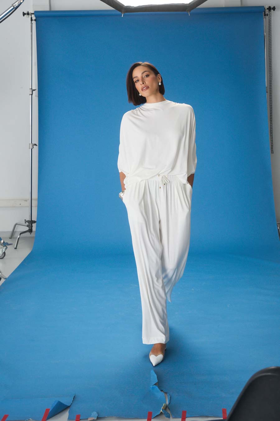 Lejący materiał sprawia, że model idealnie układa się na sylwetce.