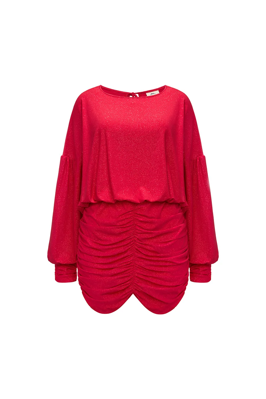 Dół sukienki wątki z drapowaniami podkreślającymi figurę.